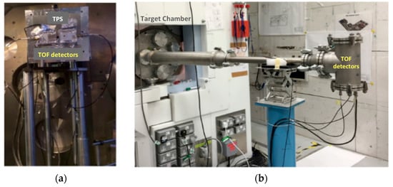 Energy spectrum, energy spread, angular distribution, and flux of the accelerated ion beam must be measured in real-time using very accurate methods. A specific on-line diagnostics system has been developed based on the TOF technique using diamond (polycrystalline and single crystal) and silicon carbide detectors. The TOF technique has been used extensively so far for the diagnosis of laser-accelerated proton and ion beams at low energy (up to ten’s MeV) and with low repetition rate laser systems [,]. Coupling such a technique with detectors as Faraday cups (FCs), ion collectors (ICs), or semiconductor-like detectors as diamond and silicon carbide ones, the biggest advantage of the TOF diagnostics is the capability to provide real-time measurement of the beam characteristics as energy cut-offs, distributions, and current and shot-to-shot reproducibility up to a repetition rate of 10 Hz. Nevertheless, the detection of intense ion/proton beams up to 100 MeV level, expected to be generated at ELIMAIA, with TOF method requires the use of fast detectors to disentangle the high-energy component of the beam.