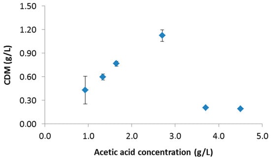 - Acetic acid exhibits a toxic effect on cell growth when present above 3 g/L.