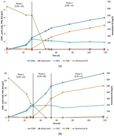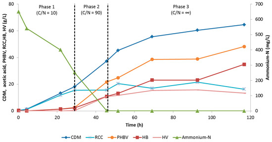 - Johnson, K.; Kleerebezem, R.; van Loosdrecht, M.C.M. Influence of the C/N ratio on the performance of polyhydroxybutyrate (PHB) producing sequencing batch reactors at short SRTs. Water Res. 2010, 7, 2141–2152. [Google Scholar] [CrossRef] [PubMed]