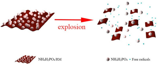 The schematic diagram of the NH4H2PO4/RM composite powders in the explosion process.