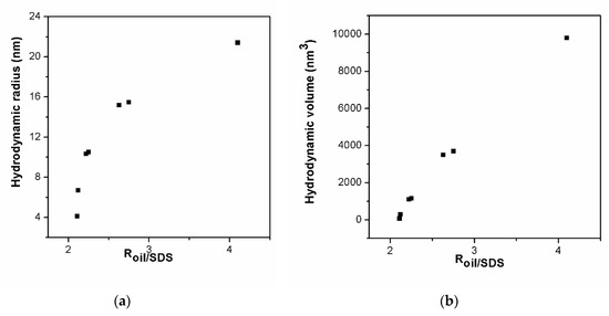 (a) Hydrodynamic radius; (b) Hydrodynamic volume of prepared microemulsions.
