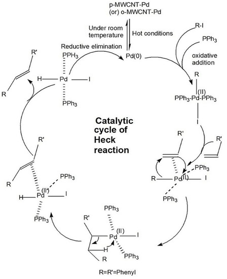 - Sun, W.; Liu, Z.; Jiang, C.; Xue, Y.; Chu, W.; Zhao, X. Experimental and theoretical investigation on the interaction between palladium nanoparticles and functionalized carbon nanotubes for Heck synthesis. Catal. Today 2013, 212, 206–214. [Google Scholar] [CrossRef]