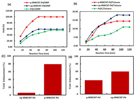 | 6 | p-MWCNT-Pd | 90 | 14.39 | 32% |