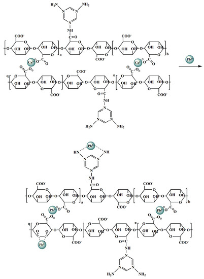 Possible binding mechanisms of Alg-Mel with Pb2+.