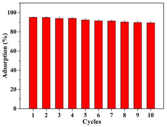 Adsorption ability of the Alg-Mel in ten adsorbing-desorbing cycles.
