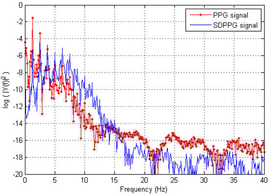 Figure 4 shows the spectrum of PPG and SDPPG signals. The spectrums of PPG and SDPPG are defined between 0 and 10 Hz, and between 0 and 14 Hz, respectively [17], while according to our spectrum analysis the 99% powers of PPG and SDPPG signals are accumulated below 5 Hz and 10 Hz, respectively. Hence, low-pass filtering with cutoff frequency of 20 Hz will not distort the shape of SDPPG signals.