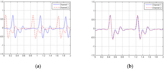 Time-compensation: (a) originally measured signals; (b) time-aligned two signals.