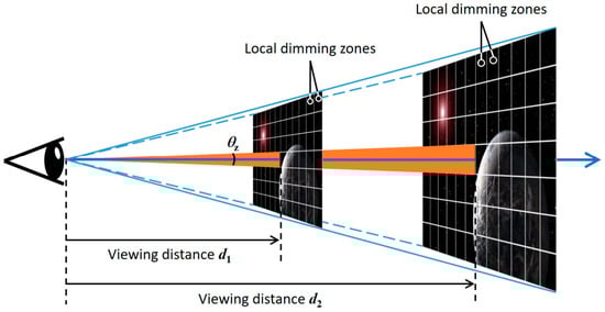 Then, a subjective experiment is designed and carried out to determine the human visual perception limit of halo effect. The LabPSNR, an evaluation metric used to quantify the difference between displayed image and target image, should be larger than 47.4 dB. Based on this limit, the requirement of local dimming zone number can be proposed: over 200 local dimming zones for high CR ≈ 5000:1 LCD panels and more than 3000 dimming zones for CR ≈ 2000:1 LCDs (Figure 4).