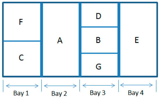 Assume there are seven facilities in a UA-FLP. The facility layout problem is to minimize the overall cost by determining how many bays are required, which facilities are assigned to which bays, what kind of ordering is adopted for placing the facilities in each bay. For instance, one solution is illustrated in Figure 1.