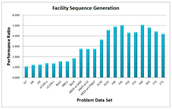 The performance ratio between INI_FS2 and INI_FS1 for facility sequence generation is shown in Figure 6. According to the results, the INI_FS2 is better than the INI_FS1 especially when the number of facilities is increased.