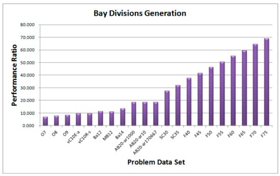 To generate bay divisions, the conventional method and the improved method are both proposed in this subsection. The conventional method (INI_BD1) is firstly to generate a random integer randI for each facility on bay divisions, and then use to get an integer of value equal to 0 or 1. Consequently, (p − 1) random integers are required for p facilities. In INI_BD1, p facilities require (p − 1) modulo operations for the representation of bay divisions. If there are n individuals, we need to perform the modulo operation () times in total, thus resulting in a high time complexity even in parallel computing. In order to reduce such calculations in parallel, we propose the other method (INI_BD2) to improve the performance of generating bay divisions. The new method uses bitwise operators instead of modulo operators. Assume the value of an integer generated randomly is , we calculate to generate a value of either 0 or 1 for the first facility in the bay divisions. Then a one-bit right arithmetic shift is adopted to change the value of , and the new is used in next iteration. Repeat the above procedure for () times, the whole bay divisions are generated. INI_BD2 algorithm is of O(1) time complexity, which is much smaller than O(p) time complexity required by INI_BD1. Moreover, INI_BD2 uses arithmetic shift operations to replace modulo operators in INI_BD1.