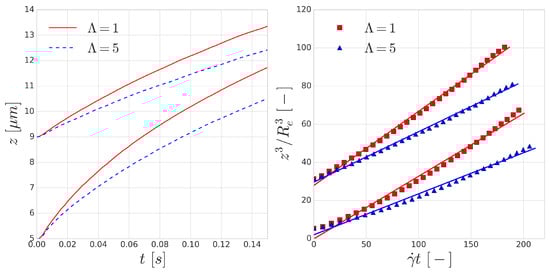 , which can be explained by the longer deformation time-scale of these cells. Since all RBCs are immersed in the flow in their equilibrium shape, local deformation time-scales play a significant role in the magnitude of the appearing lift force. The curves corresponding to