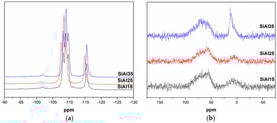 29Si (a) and 27Al (b) MAS NMR (Magic-angle spinning solid-state nuclear magnetic spectroscopy) spectra of the calcined samples.