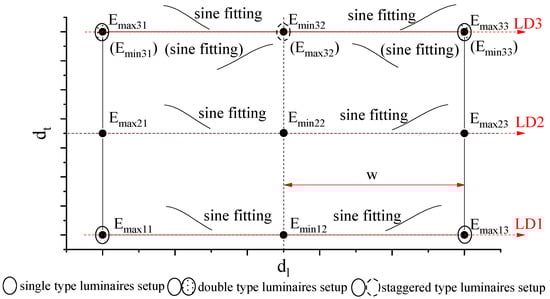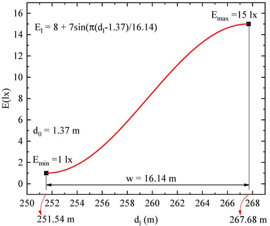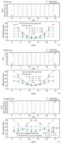 3.1. Illuminance Distributions and Modelling in the Longitudinal Direction