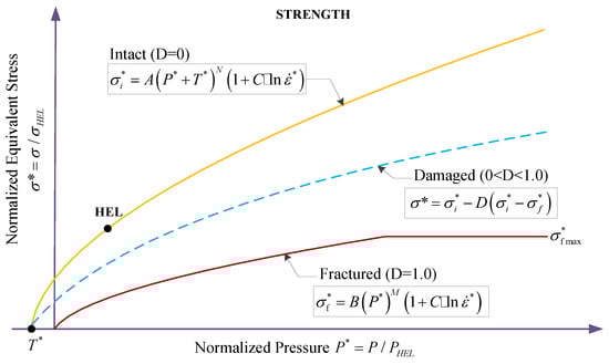 - Johnson, G.R.; Holmquist, T.J. An improved computational constitutive model for brittle materials. In AIP Conference of High-Pressure Science and Technology; Schmidt, S.C., Shaner, J.W., Samara, G.A., Eds.; American Institute of Physics: Colorado Springs, CO, USA, 1994; Volume 309, pp. 981–984. [Google Scholar]