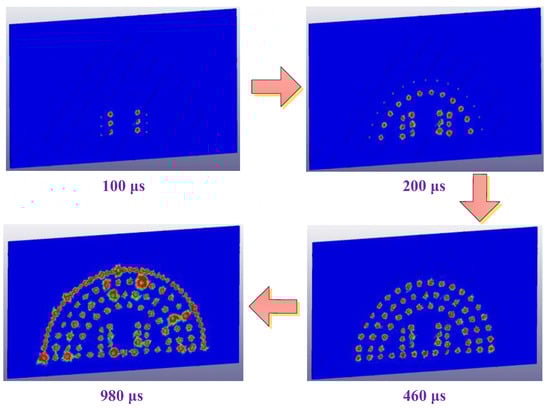 - Banadaki, M.M.D.; Mohanty, B. Numerical simulation of stress wave induced fractures in rock. Int. J. Impact Eng. 2012, 40, 16–25. [Google Scholar] [CrossRef]
