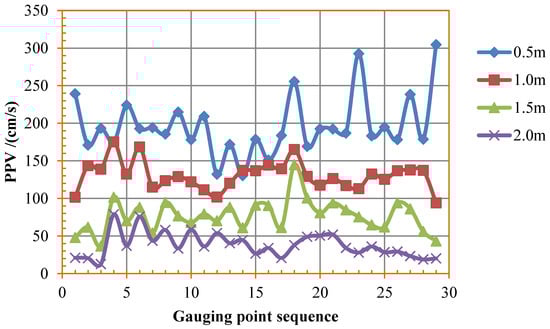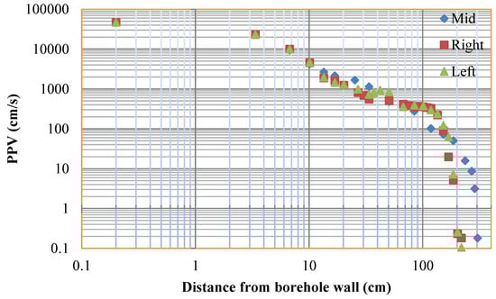 | Distance (m) | PPV Concentrated Range (cm/s) | Average PPV (cm/s) | Damage Degree |