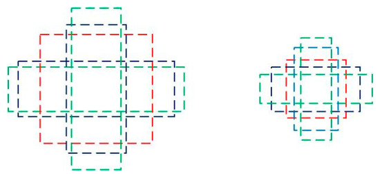 Next, a default box should be added when the width-to-height ratio is one. The center of each default box is , and is the size of the K-th feature unit, . The intersection over union (IoU) between area A and area B can be calculated as: