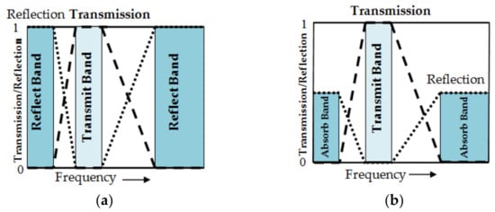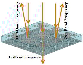 FSS structures (capacitive and inductive), also called spatial filters, are analogous to the microwave filters according to the circuit theory. Filtering characteristics of FSS can be categorized into the four kinds, including low pass, high pass, stop band, and passband. Low pass FSS filters permit a lower range of frequencies to pass through the structure, while bypass higher range of frequencies. High pass FSS filter operation is a counterpart of low pass filter function by applying Babinet principle. Similarly, stopband FSS filter blocks undesired frequencies while passband FSS filter allows only specific frequency range. For a desired resonant operation, FSSs are designed by periodic arrays of metal patches and/or slots etched on a dielectric material. The appropriate selection of FSSs array elements, shape, dimension, and substrate material is the most important part of the design process.