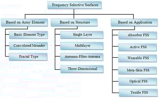 Here, in this section, we categorize the FSSs on the basis of array element, structure design, and application. Figure 4 gives the taxonomy of the FSS presented in this article.