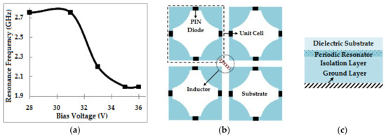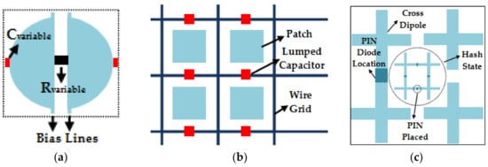 - Parker, E.A.; Savia, S. Active frequency selective surfaces with ferroelectric substrates. IEE Proc.-Microw. Antennas Propag. 2001, 148, 103–108. [Google Scholar] [CrossRef]