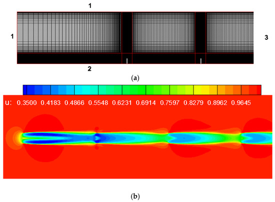 (a) Mesh topology; (b) stream-wise flow with multi-wakes.