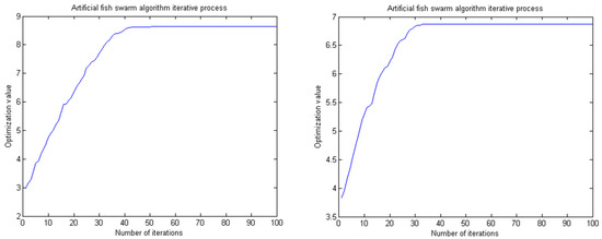 The parameters of the artificial fish swarm algorithm are set as follows: the maximum number of iterations of the artificial fish is 100; the population size is 5; the maximum number of trials is 5; the crowding factor δ is 0.618; the perceived distance is 0.5; and the moving step is 0.1.