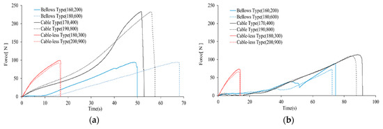 Insertion force and separation force experimental results according to process parameters by grommet type. (a) Insertion force results according to grommet shape type; and (b) separation force results according to grommet shape type.