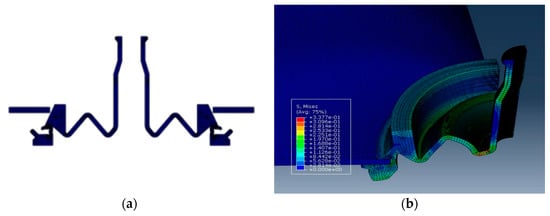 Analysis results. (a) Sectional view for grommet analysis; and (b) analysis result confirmation of stress and maximum stress distribution by the position of grommet.