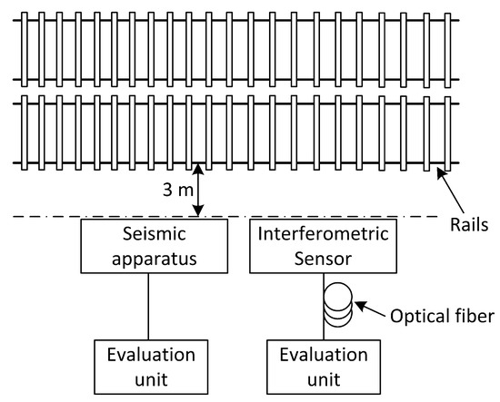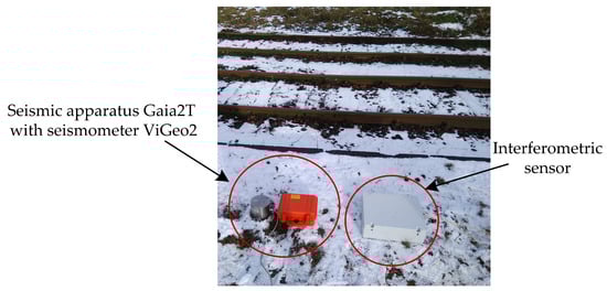 Seismic stations [5,6,7] made by recognized companies come equipped with speed and acceleration sensors and are commonly used to measure the effect of vibrations or to detect rail vehicles. Time records are generated showing the passing of a vehicle. Frequency spectra are subsequently calculated in the relevant software. The cost of these devices is often in the thousands of U.S. dollars [8,9,10]. This study used a Gaia 2T apparatus with ViGeo2 seismic sensor station as a reference seismic station to an interferometric sensor. The present paper shows that an optical interferometric sensor is a suitable alternative to a seismic station and has a price lower by an order of magnitude (for the details, please see the Discussion).