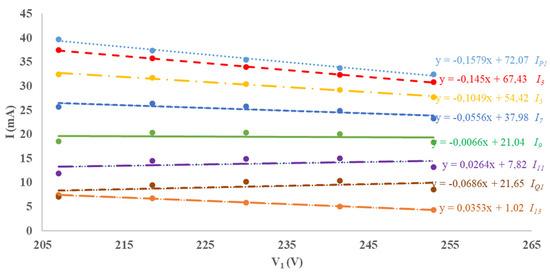 The measurements have been performed in the range of ±10% of the rated voltage due to the voltage variations that is allowed for the utility [77]. Throughout the day, the rated voltage could suffer of some variations due to the distributed renewable generators into the network, the load variations, the network configurations and so on, without the possibility for the users to do anything about it [78].