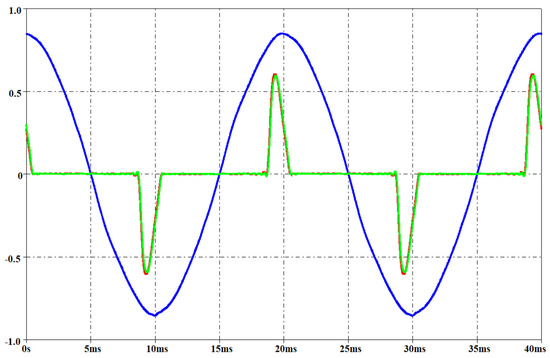 In the previous equations, the currents , and are independent from V1 since they arise from the constant terms in (14). Therefore, their waveforms are emulated by means of independent current generators in the equivalent circuit (Figure 9).