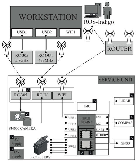 The general scheme of the sensory and processing system embedded in the UAV is shown in Figure 3.