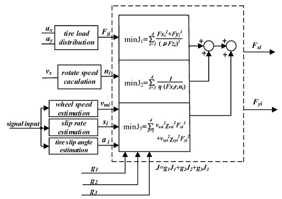 The study of chassis integrated control falls into centralized control structure and hierarchical control structure. The centralized control structure is based on the vehicle dynamics characteristics of the whole vehicle, and the subsystems are directly controlled by the centralized controller at the global level. The controller design is generally based on linear or nonlinear models and the design method of multi-input multi-output system (MIMO) is adopted to solve the coupling problem of vehicle longitudinal dynamics and lateral dynamics. However, the design of the centralized controller is difficult and the control algorithm is complex [28].