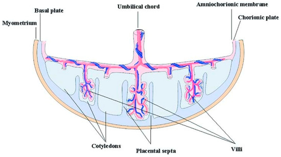 Schematic illustration of the cross-section of human term placenta. All fetal stem cells are isolated from this part of the human fetus. Reproduced with permission from Reference [106].