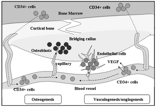The therapeutic effects of BM-MSCs are associated with the secretion of large amounts of different bioactive molecules (e.g., FGF-2, Ang-1, and G-CSF), which provide a regenerative microenvironment with a trophic activity for the damaged bone tissue [173]. In addition, BM-MSCs homing to the sites of bone tissue injury is considered another factor that enhances their therapeutic effect [174].