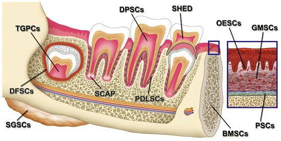 - Liu, J.; Yu, F.; Sun, Y.; Jiang, B.; Zhang, W.; Yang, J.; Xu, G.T.; Liang, A.; Liu, S. Concise Reviews: Characteristics and Potential Applications of Human Dental Tissue-Derived Mesenchymal Stem Cells. Stem Cells 2015, 33, 627–638. [Google Scholar] [CrossRef]