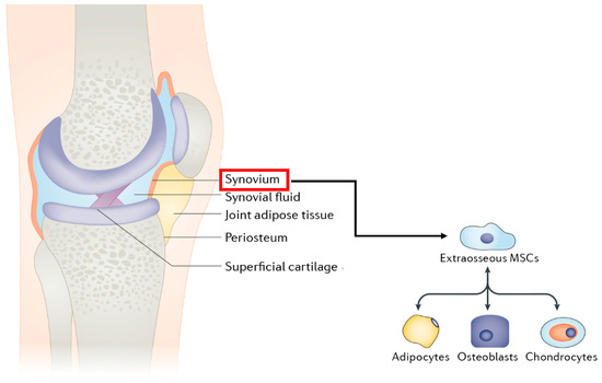 - Fan, J.; Varshney, R.R.; Ren, L.; Cai, D.; Wang, D.-A. Synovium-derived mesenchymal stem cells: A new cell source for musculoskeletal regeneration. Tissue Eng. Part B 2009, 15, 75–86. [Google Scholar] [CrossRef] [PubMed]