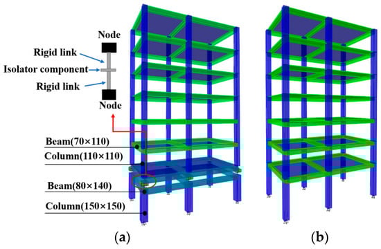 The fabricated story isolated model and non-isolated model: (a) Story isolation model; (b) non-isolated model.