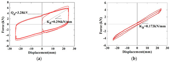 Hysteresis curve of rubber bearings: (a) LRB; (b) LNR.