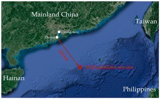 In 2017, China succeeded in exploiting NGH; the total methane output in 60 days was 3.0 × 105 m3 [8]. Figure 1 shows the location of this NGH production test in the Shenhu area of the South China Sea. This result indicates that the South China Sea has great potential for NGH resource exploitation. At present, common methods of NGH exploitation include depressurization, thermal stimulation, inhibitor injection, and carbon dioxide (CO2) replacement [9,10,11,12]. However, these NGH exploitation methods have some limitations for NGH reservoirs in the South China Sea, which are characterized by shallow burial depth, non-trap structure, low consolidation strength, non-diagenesis, and low permeability [13,14]. Hydrate secondary formation and ice formation are easily caused by depressurization [15,16], which may block the permeability path of the non-diagenetic NGH reservoirs and be unfavorable for long-term exploitation. The main disadvantage of the thermal stimulation method is that the heat utilization efficiency is not high [10,17]. For the inhibitor injection method, injection of the chemical reagents for NGH recovery is not feasible and economical [4,18], and the low permeability of the NGH reservoirs will lead to the slow action of chemical reagents on NGH formation. In addition, owing to the weak cementation of the hydrate reservoirs, the above three exploitation methods are based on the principle of direct decomposition of NGH, which easily causes instability of the formation. With respect to the CO2 replacement method, the production period is long [12,19], and similarly, the low permeability of the NGH reservoirs has a great impact on mining efficiency. Therefore, the above common methods cannot meet the requirements for safe, long-term, and efficient exploitation of NGH reservoirs in the South China Sea.