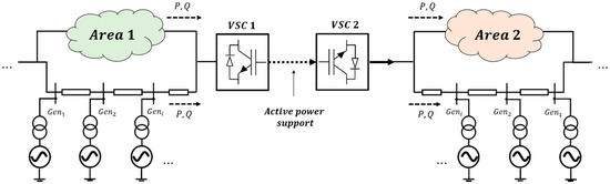 Two interconnected grids with a voltage-source converter (VSC)-based high-voltage DC (HVDC).