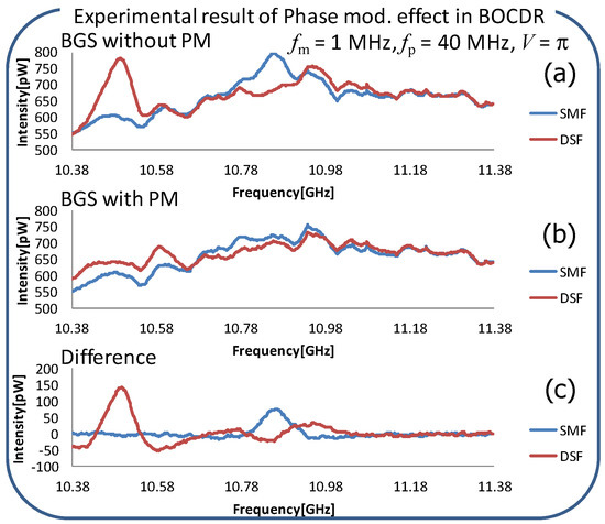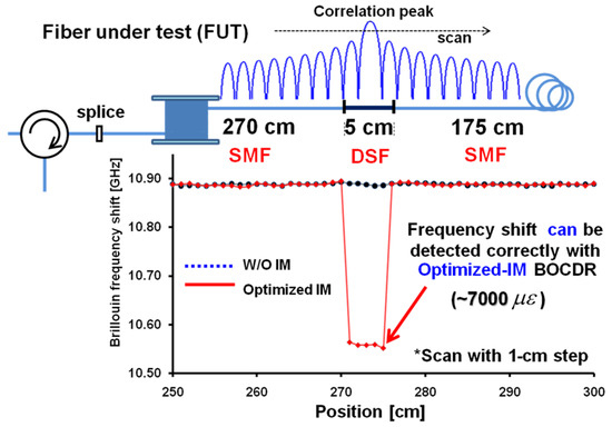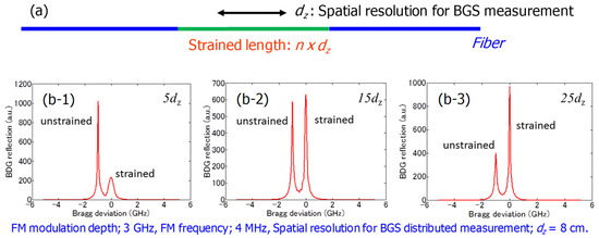 In 2010, a discriminative and distributed strain/temperature measurement scheme was also proposed and demonstrated [18], using both the BOCDA scheme and “Brillouin dynamic grating (BDG)”, which is a phenomenon that is associated with the stimulated Brillouin scattering process [19,20]. Ways to improve the measurement performances have also been proposed and demonstrated, including the spatial resolution improvement in the distributed BDG measurement by the BOCDA scheme.