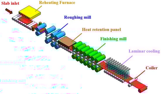 Most steel products are manufactured after high temperature slabs are rolled by rolling mills. In the hot strip rolling process shown in Figure 1, the high temperature slabs are roughly rolled into the transfer bars and then transported into the finishing rolling through the original heat retention panel. During the transport process, in addition to self-radiation heat dissipation, the convective heat dissipation of air, the contact heat conduction cooling of the rollers beneath the conveyors, and the change in the speed of the conveyors will cause a temperature difference between the head and the tail of the transfer bar. When this temperature difference is too large, it will make the finishing rolling more difficult and also cause the production line to shut down.