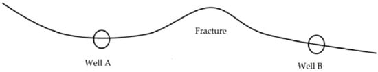 Most existing interference test analysis models consider homogeneous reservoirs with different boundaries, but most reservoirs are heterogeneous and have fractures. If the geological information is complete, a numerical interference test analysis can be performed for a heterogeneous reservoir. A fractured reservoir can be characterized by a multimedium model or discrete fracture model depending on the density of fractures. Kazemi and Deruyck analyzed the interference test of double porosity medium reservoirs using the Warren–Root model for reservoirs with intensive fractures [28,29,30]. The multimedium model does not work for reservoirs with sparse fractures. For example, the reservoirs at Halahatang Oilfield, Tarim Basin in China are occurrent along faults resembling a string of beads. Although Biryukov and Kuchuk [31] investigated the effect of discrete fractures on well test curves, there are few studies on the impact of large fractures on the interference test.