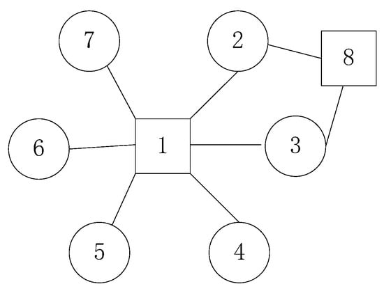 Diagrams are used here to represent network communication relationships overtime. A large number of previous studies [8,9,11,18,19,20,21] use IP as a node in the communication. If data are transmitted between two IPs, the nodes represented by the two IPs are connected by one side. There are two limitations to this representation. First, it is impossible to determine from the topology whether an IP is a server or a client. For example, in Figure 2, node 1 may indicate that (1) one server receives many client visits or that (2) one client uses multiple applications to communicate with multiple servers at the same time. Second, it is impossible to identify the situation (through topology) when a service node provides multiple services. Since there is the possibility that an IP provides multiple services, even if node 1 in Figure 2 is known as a server node, it is not known exactly which services are provided and which clients correspond to each service.