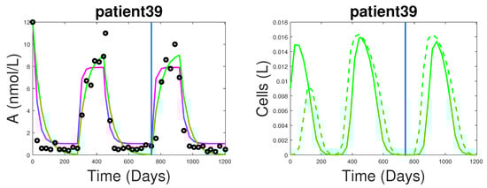 3.1. Fitting and Forecasting of Androgen and Cancer Cell Dynamics