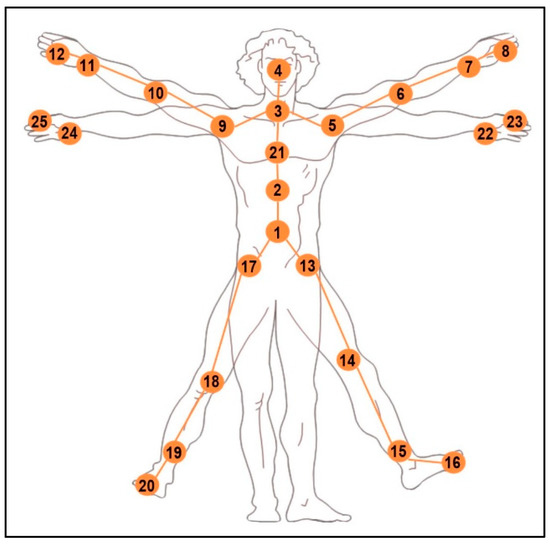 Anatomical locations of the 25 tracked joints.