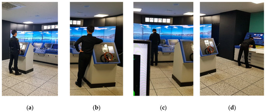 During the model development phase, 24 senior cadets (174.3 ± 8.4 cm, 67.3 ± 11.7 kg, 23.2 ± 1.8 years) at Mokpo National Maritime University participated in the study (Table 2). All participants completed a year-long onboard navigation training and performed scenario-based lookout activities, including the seven standard lookout activities in Table 3 and four sample lookout activities in Figure 5.