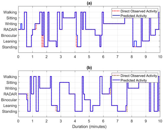 Validation of results of lookout activity classification using direct observation: (a) validation experiment 1, (b) validation experiment 2.